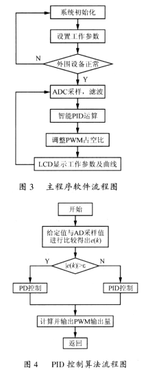本系統(tǒng)包括PID控制器,PWM輸出,AD采樣,構(gòu)成單閉環(huán)系統(tǒng)。前端三相交流電源輸入到開關(guān)電源整流模塊,經(jīng)整流濾波后輸出平穩(wěn)的直流電壓。該直流電壓直接輸出至IGBT模塊。高精度AD轉(zhuǎn)換器將后端輸出的電壓電流信號(hào)由模擬信號(hào)量變?yōu)閿?shù)字量供給S3C44BO進(jìn)行數(shù)字PlD運(yùn)算,經(jīng)過PID控制運(yùn)算后,由S3C4480輸出PWM至IGBT從而構(gòu)成一個(gè)閉環(huán)系統(tǒng),控制電壓電流穩(wěn)定輸出,從而實(shí)現(xiàn)開關(guān)電源控制系統(tǒng)。