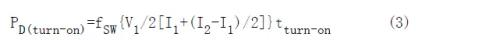 這個(gè)成果只是功率開關(guān)開通期間的損耗值,再加上關(guān)斷和導(dǎo)通損耗能夠得到開關(guān)期間的總損耗值。