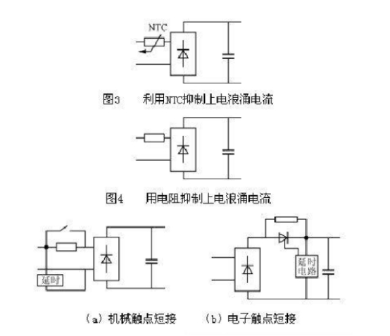 浪涌會形成電源電壓波形凹陷,使得供電質量變差,甚至會影響其他用電設備的作業以及使維護電路動作;由于浪涌沖擊整流器的輸入熔斷器,使其在若干次上電進程的浪涌沖擊下而非過載熔斷。為避免這類現象產生,而不得不選用更高額定電流的熔斷器,但將呈現過載時熔斷器不能熔斷,起不到維護整流器及用電電路的作用;過高的上電浪涌對整流器和濾波電容器形成不可康復的損壞。因此,有必要對帶有電容濾波的整流器輸入浪涌加以束縛。