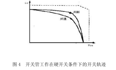 (d)二極管反向恢復問題:二極管由導通變為截止時存在著反向恢復期,在此期間內,二極管仍處于導通狀況,若當即注冊與其串聯的開關器材,簡單造成直流電源瞬間短路,發生很大的沖擊電流,輕則引起該開關器材和二極管耗急劇添加,重則致其損壞。圖4給出了接理性負載時,開關管作業在硬開關條件下的開關的開關軌道,圖中虛線為雙極性晶體管的安全作業區(Safetyoperation area,SOA),如果不改進開關管的開關條件,其開關軌道很可能會超出安全作業區,導致開關管的損壞。
