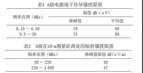 依據鐵路客運專線規范規定,傳導攪擾限值和輻射攪擾限值如表1、2所示。