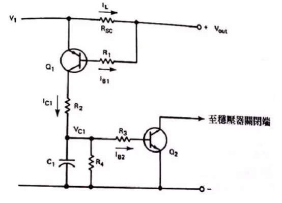 作業原理是:在正常的作業情況下,流入到Rsc上的Il不會發生很大的壓降,那么就不會使Q1導通,若負載電流足夠大就會在Rsc上發生電壓,使Q1導通。若Q1在OFF裝態時,而且Ic1=0時C1會全部放電掉,因此Q2也會處于OFF情況,假設Il電流逐步添加時,則Il*Rsc=VbeQ1+Ib1R1,此刻會合電極會有電流Ic1流過,并有下面的時間常數將C1充電T=R2*C1,那么C1上的電壓是:Vc1=Ib2R3+VbeQ2,為了使為了使電容器電壓的負載效應減到最低值,咱們可選用具有較高的HFE的達林凳管子來替代Q2,這樣可以把基極電流約束在微安培,我門在挑選電阻R4時要遠遠大于R3。這樣當電流過載時,C1電容會快速放電。