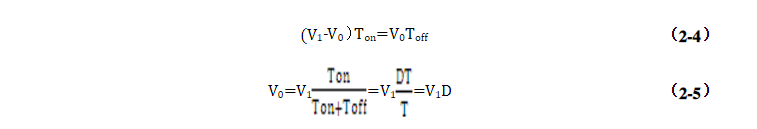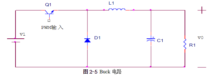 由(2-5)式可知,通過改變開關管的占空比可以控制輸出平均電壓的大小。由于占空比總是小于1,所以V0總是小于V1,所以說Buck電路是降壓電路。
