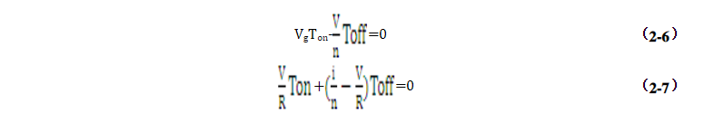 現在來分析它的工作原理:?當Q導通時,二極管截止,根據電路知識可知此時VL=Vg,ic=-V/R;當Q截止時,二極管D導通,VL=-V/n,ic=i/n-V/R。由伏秒平衡和電容充放電平衡可得: