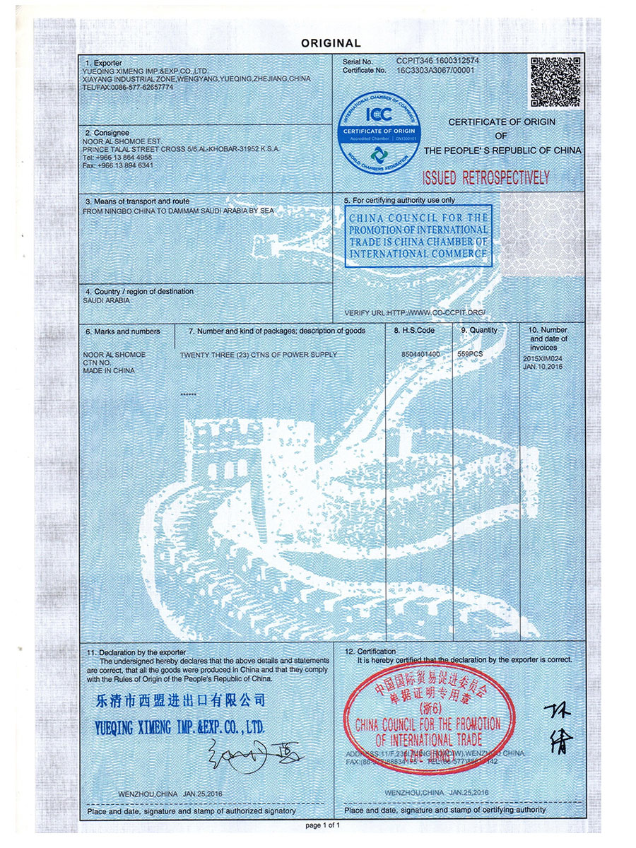 中國(guó)國(guó)際貿(mào)易促進(jìn)委員會(huì)證書2