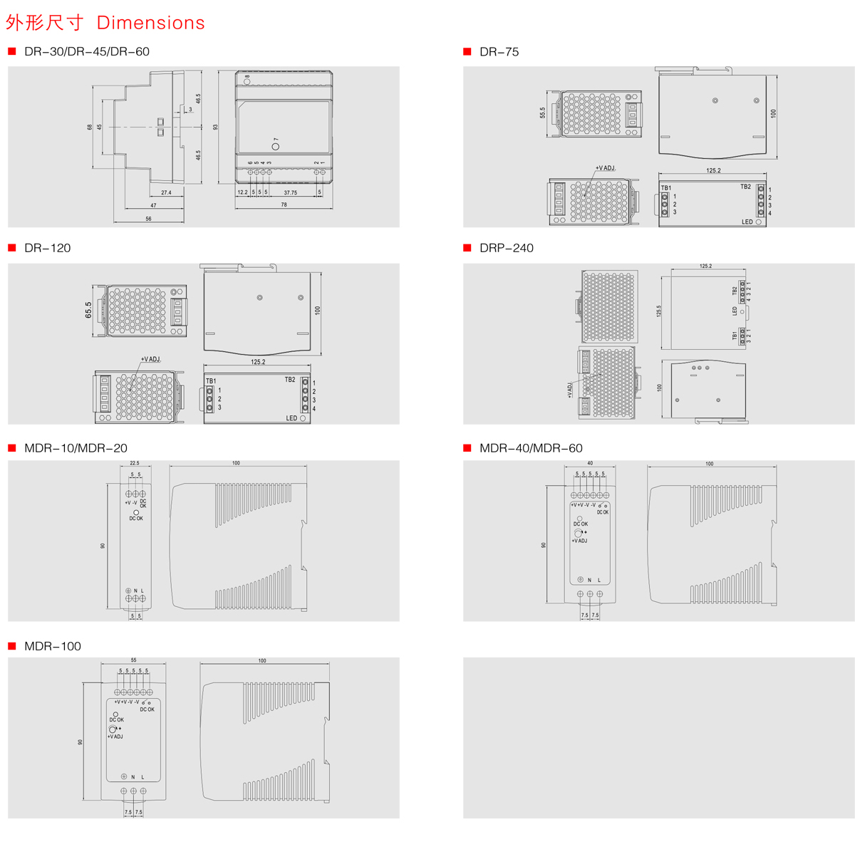 單相,全范圍輸入 空載待機消耗瓦數(shù)<0.75W~1W 適合安裝于DIN rail TS-35 / 7.5 或 15 內建主動式功率因子矯正功能(active PFC) 適合于視覺檢測設備及植物栽培系統(tǒng) MDR-20(200-360VAC)適合風力發(fā)電行業(yè)